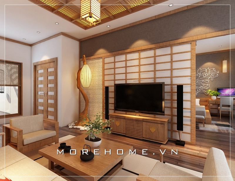Trong thiết kế nội thất phòng khách chung cư, bạn có thể sử dụng cửa trượt vừa làm cửa ngăn vừa làm vách trang trí đẹp mắt, độc đáo từ phong cách thiết kế nội thất Nhật Bản sang trọng.