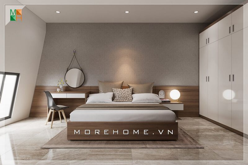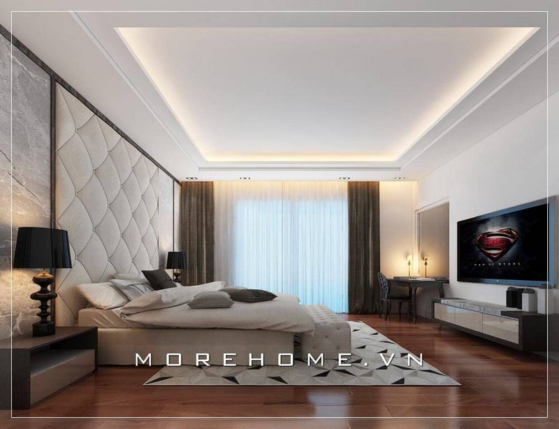 Thiết kế phòng ngủ biệt thự hiện đại, đem đến 1 cảm giác vô cùng thoải mái và thư giãn với 3 màu xám, trắng và nâu