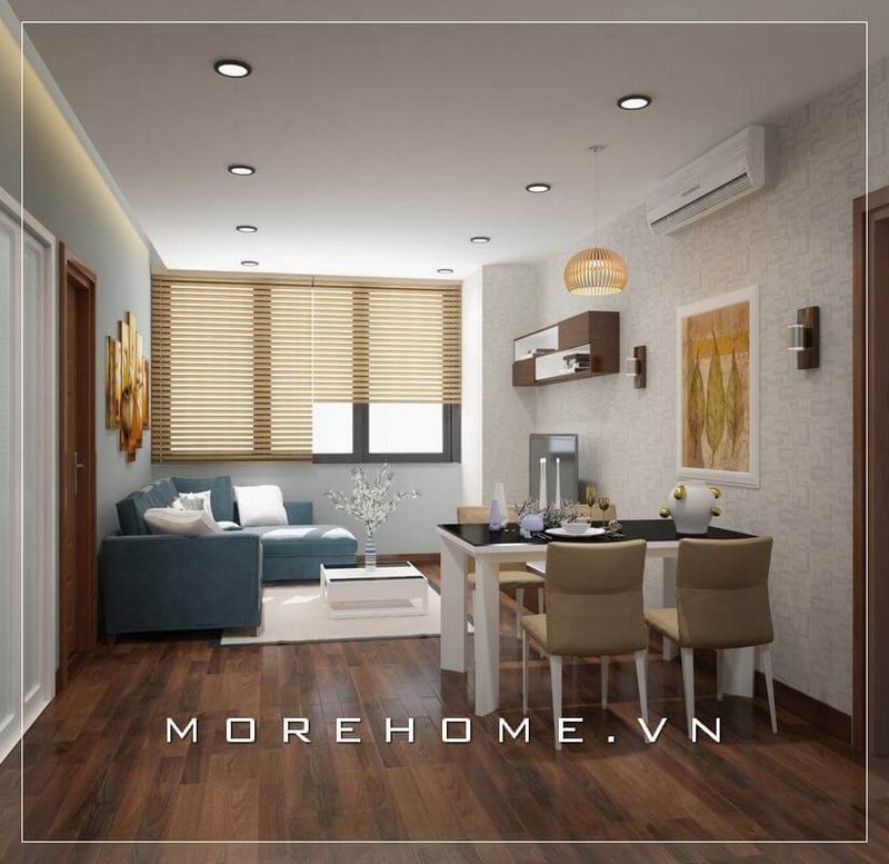 Mẫu thiết kế nội thất cho phòng khách của căn hộ chung cư nhỏ, hiện đại và tiện lợi.